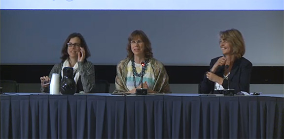 Chair: Kathy Hassell (Center) with Dr. Sophie Lanzkron (NO, left) and Dr. Mariane de Montalembert (YES, right)