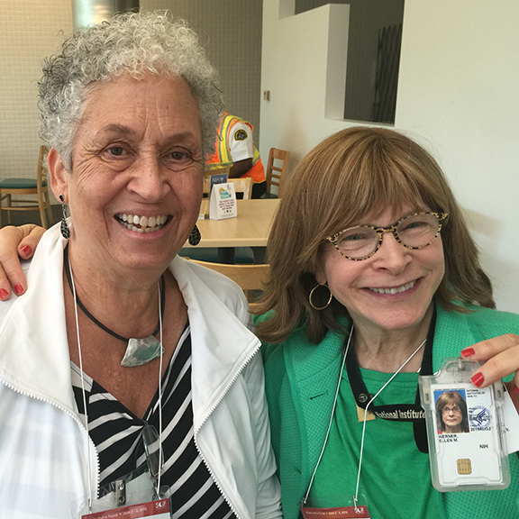 Axis Advocacy (Adrienne and Nancy) during the first break and conversing with colleagues.
